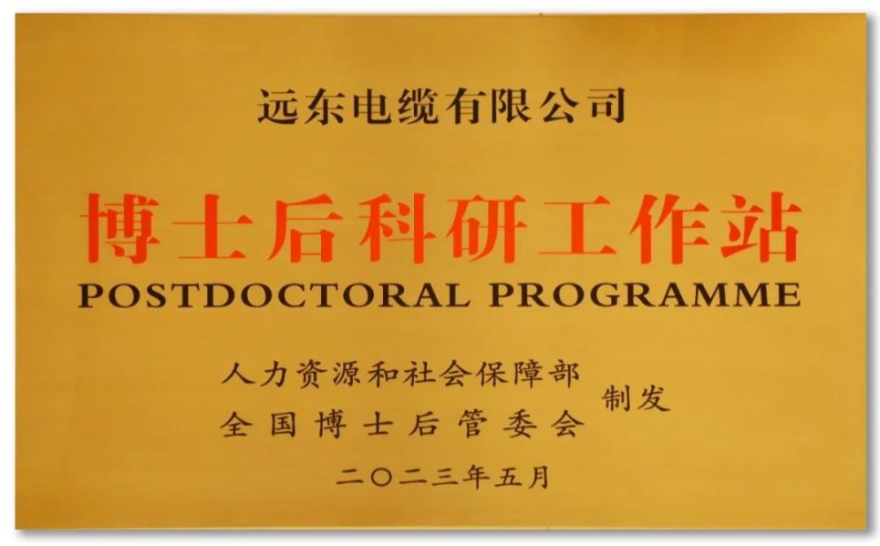 在國(guó)家各級(jí)博士后工作管理部門(mén)的大力支持和公司的高度重視下,遠(yuǎn)東電纜“博士后科研工作站”于2023年5月經(jīng)國(guó)家人事部、全國(guó)博士后管委會(huì)批準(zhǔn)設(shè)立,并于5月24日在“2023太湖人才峰會(huì)”開(kāi)幕式上接受授牌。